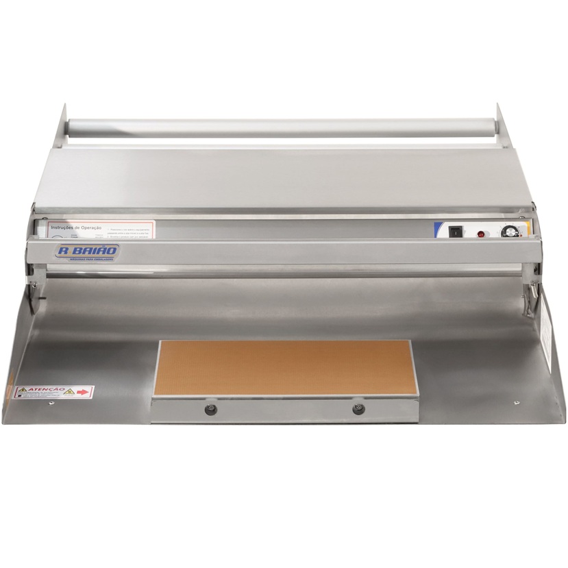 aquecida e a resistência da bandeja sela o fundo do produto, garantindo a segurança da embalagem.