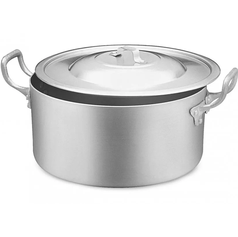 Descrição: Item 2 peças, caçarola econômica com aba e tampa em alumínio. Peça com 2 alças de alumínio fundido.