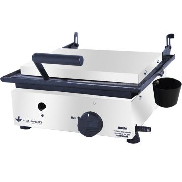PRENSA SANDUICHEIRA A GÁS SEM GAVETA 30 DETALHES ■ Gás GLP baixa pressão; ■ Queimador com sistema sem gaveta; ■ Chapa superior estampada em aço carbono; ■ Controle individual dos queimadores; ■ Corpo externo em aço inox 430; ■ Copo coletor de resíduos em plástico; ■ Manipulador com regulagem de 3 posições; ■ Copo coletor de resíduos em material plástico super resistente de fácil limpeza;
